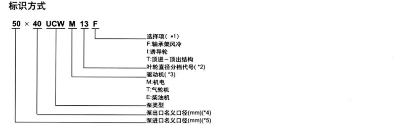 (*4)當(dāng)泵進(jìn)口和出口相時,進出口尺寸代號可不必重複寫,例如,200 UCWM 20可代表200 X200 UCWM 20.