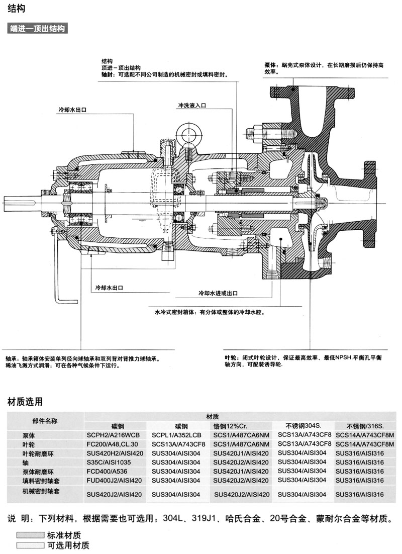 UCW係列泵為單極、單吸、臥式、殼體中(zhōng)心線支承結構的離心泵。