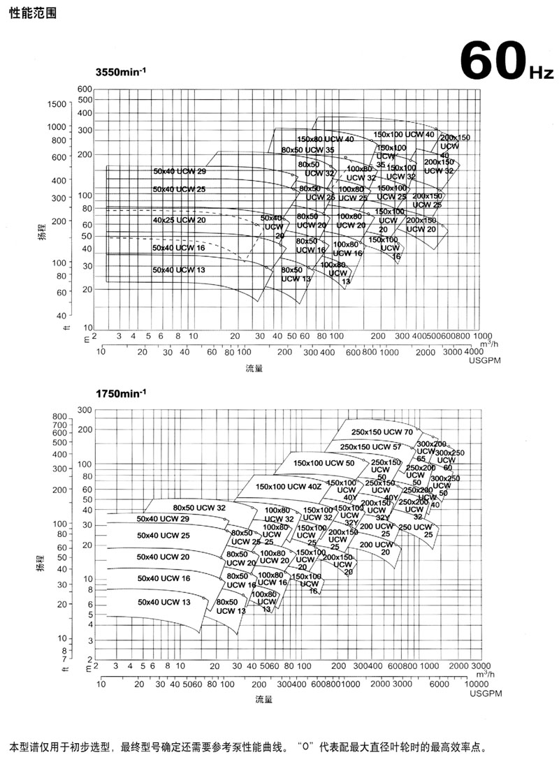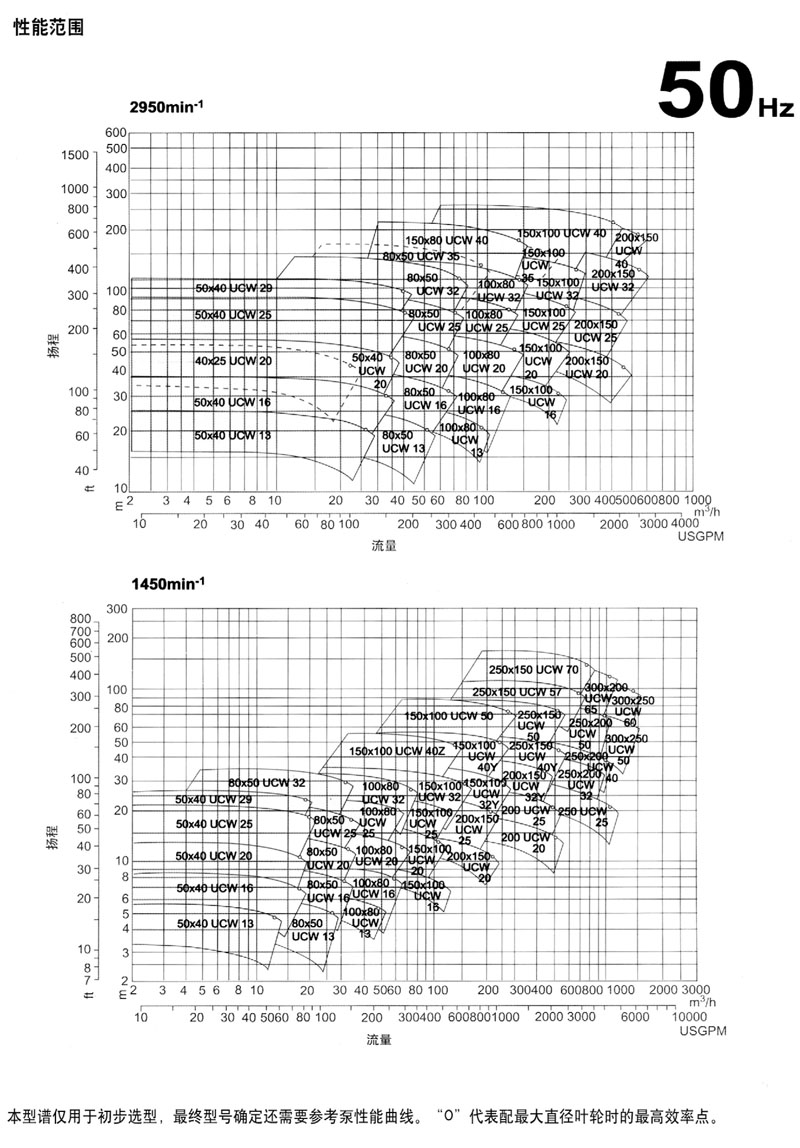 (·2)當葉輪(lún)直徑代碼後有字(zì)母“Y”。“Z”時表示(shì)不同的葉輪和泵體設計。例如,150×100 UCWM 400,150X100 UCWM 40Y.