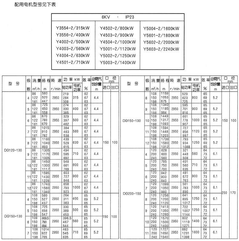 配用電機型號見下表
