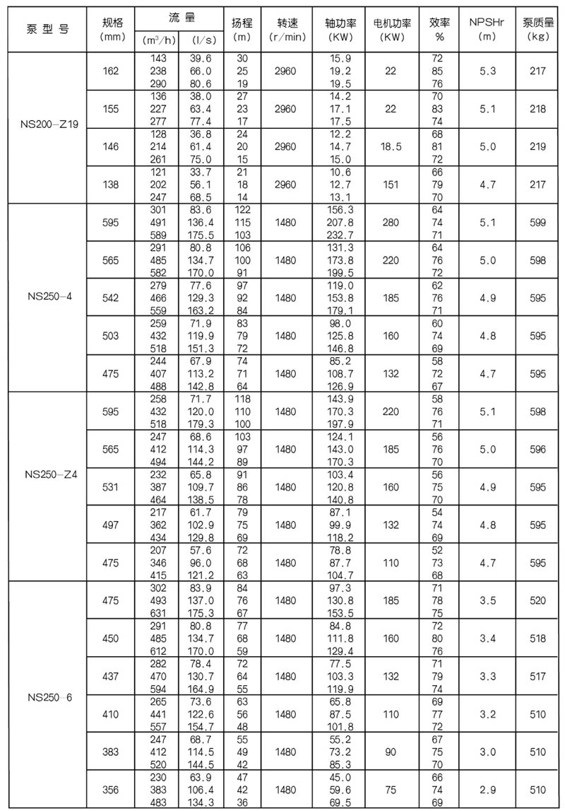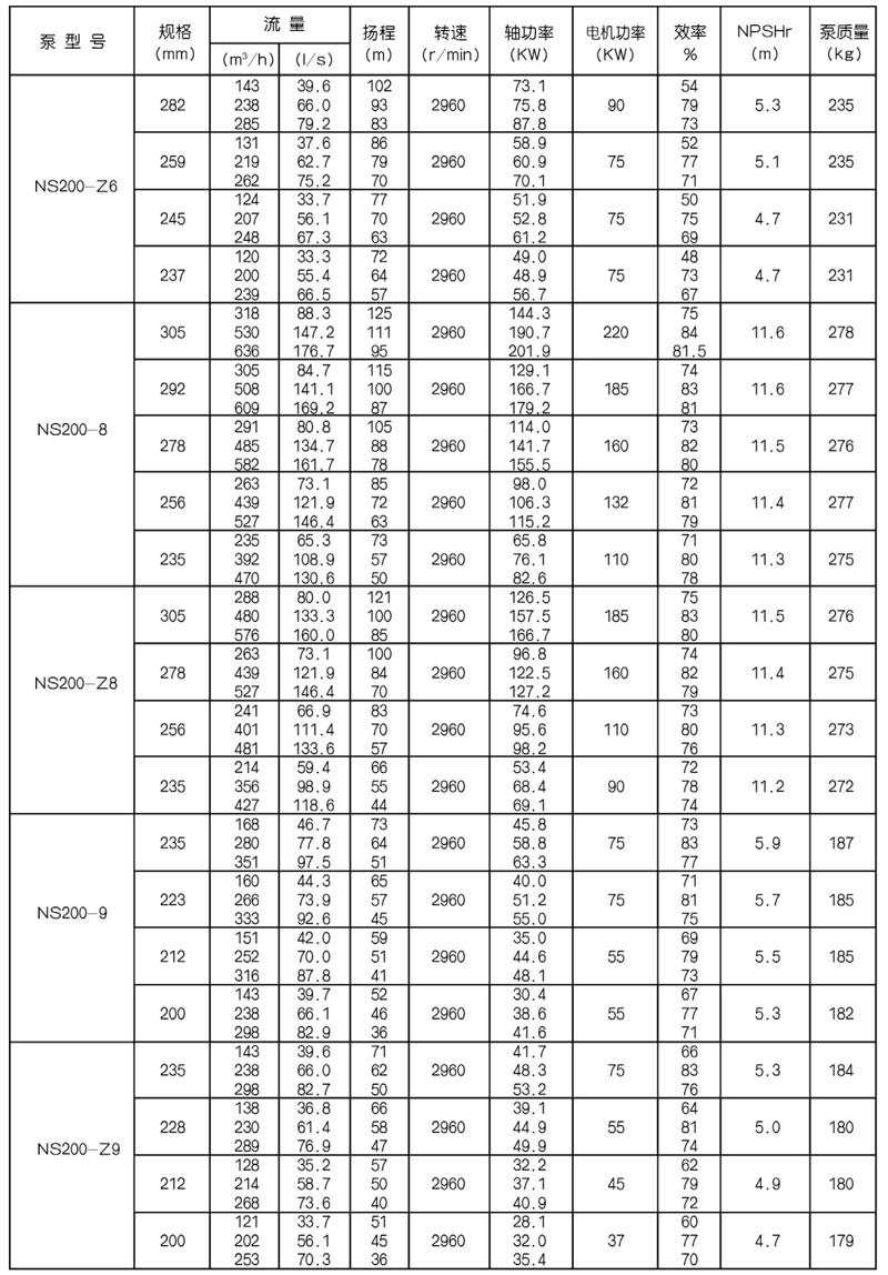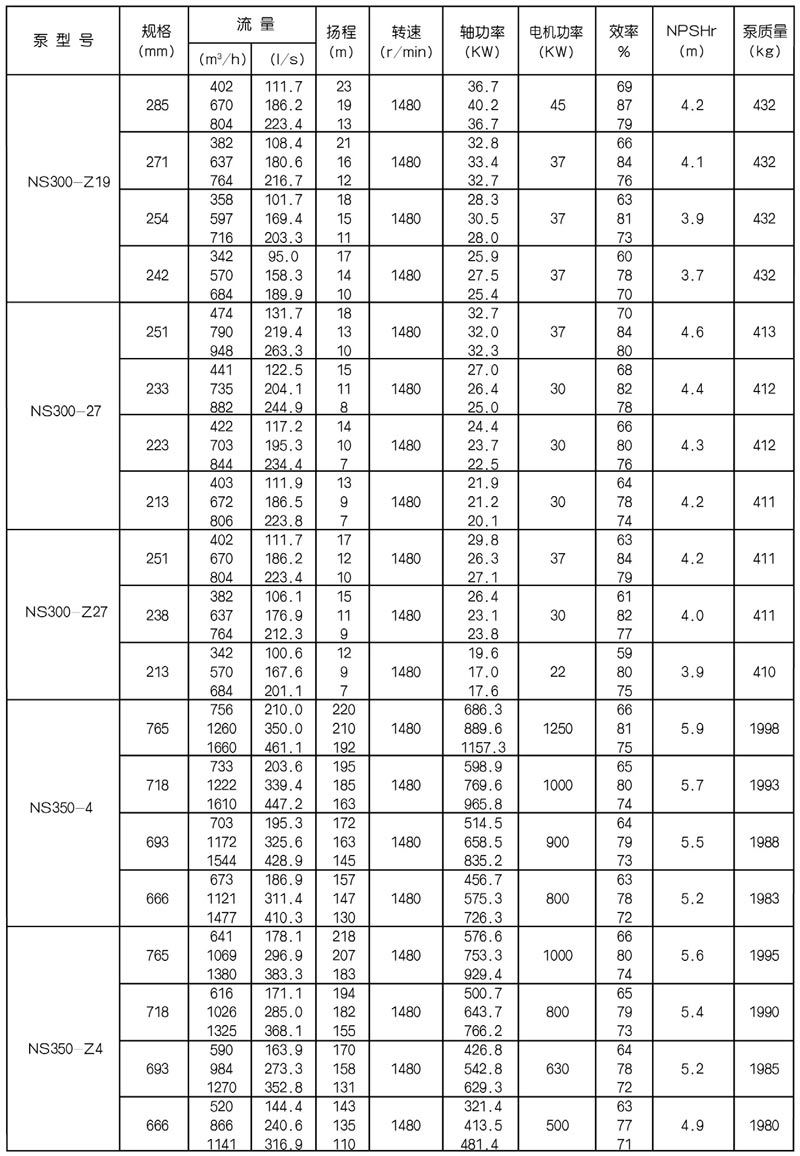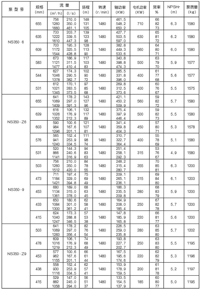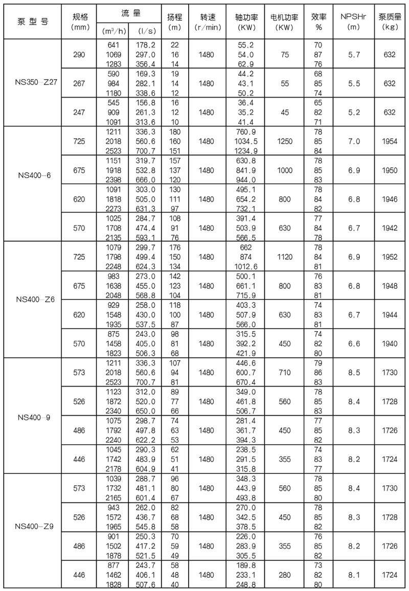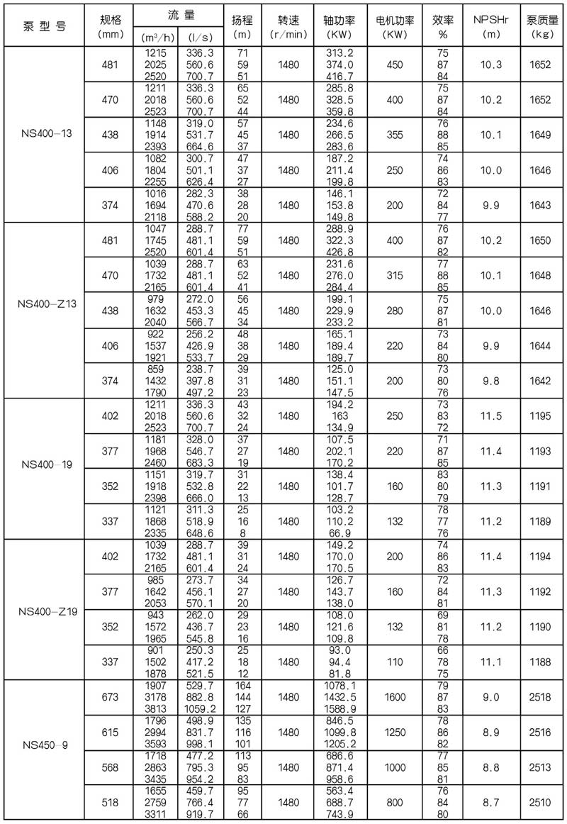 NS型(xíng)單級雙吸中開式離心泵是我公司總結國內外優秀水(shuǐ)力模型,廣泛(fàn)吸收國內外同類產(chǎn)品先進(jìn)的設計製造技術,根據國(guó)內市場實際需要開發的新型(xíng)中開式雙吸泵。全係列泵(bèng)型譜內各型號規劃更加科學合理,高揚(yáng)程雙吸泵可以代替部分多級泵,大流量雙吸泵可以代替部分混(hún)流泵,優化匹配各水力尺寸(cùn),汽(qì)蝕和效率兼顧,滿足GB/T19762能效評價值,達到節能目標(biāo)。結構再創新,運轉可靠維護方便、延長(zhǎng)使用壽(shòu)命,使中(zhōng)開式雙吸離心泵優秀泵型發揮更大(dà)效益(yì)。我公司目前生產的雙吸泵有46種型(xíng)號,390個規格,處於(yú)節能(néng)和使用性能範圍考慮,一個型號有兩種葉輪(lún),叫標(biāo)準葉輪和窄葉輪,以更優性能滿(mǎn)足使用工況要求。本係列泵符合ISO2548C、GB3216、GB/T5657標準。