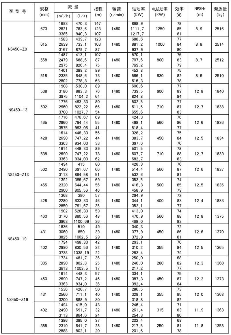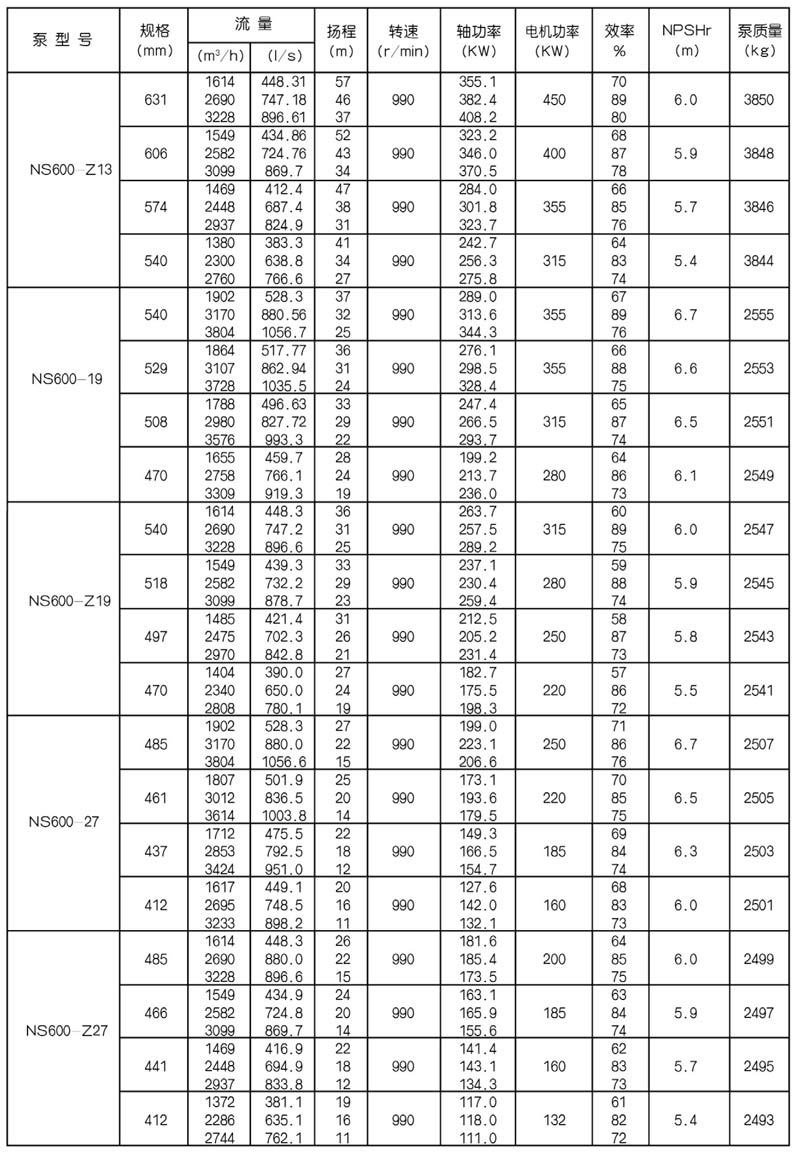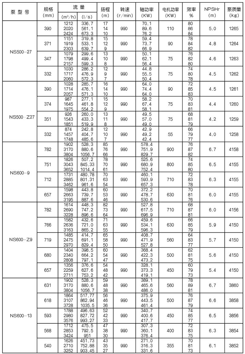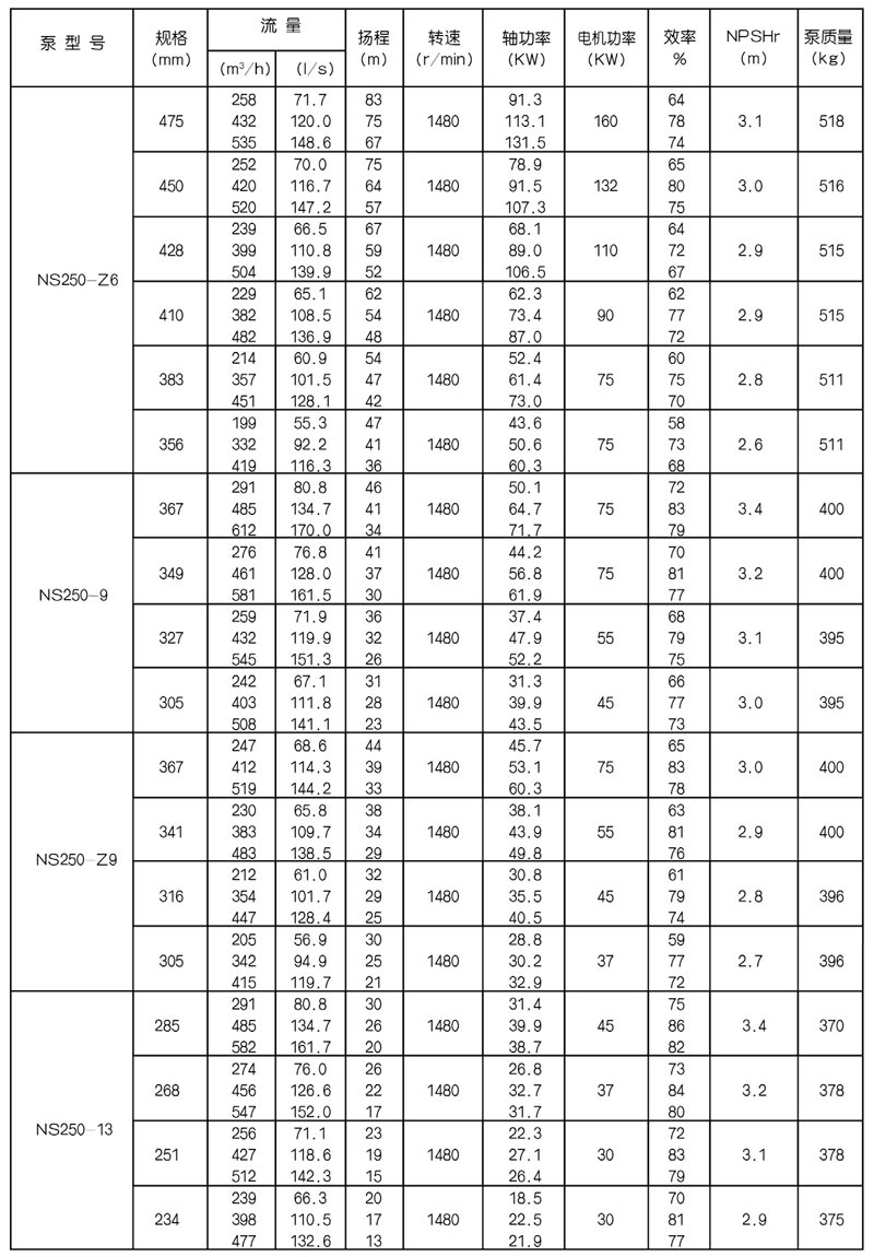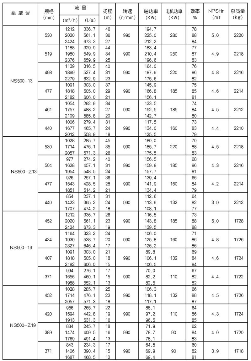 NS型(xíng)單級雙吸中開式離心泵是我公司總結國內外優秀水(shuǐ)力模型,廣泛(fàn)吸收國內外同類產(chǎn)品先進(jìn)的設計製造技術,根據國(guó)內市場實際需要開發的新型(xíng)中開式雙吸泵。全係列泵(bèng)型譜內各型號規劃更加科學合理,高揚(yáng)程雙吸泵可以代替部分多級泵,大流量雙吸泵可以代替部分混(hún)流泵,優化匹配各水力尺寸(cùn),汽(qì)蝕和效率兼顧,滿足GB/T19762能效評價值,達到節能目標(biāo)。結構再創新,運轉可靠維護方便、延長(zhǎng)使用壽(shòu)命,使中(zhōng)開式雙吸離心泵優秀泵型發揮更大(dà)效益(yì)。我公司目前生產的雙吸泵有46種型(xíng)號,390個規格,處於(yú)節能(néng)和使用性能範圍考慮,一個型號有兩種葉輪(lún),叫標(biāo)準葉輪和窄葉輪,以更優性能滿(mǎn)足使用工況要求。本係列泵符合ISO2548C、GB3216、GB/T5657標準。