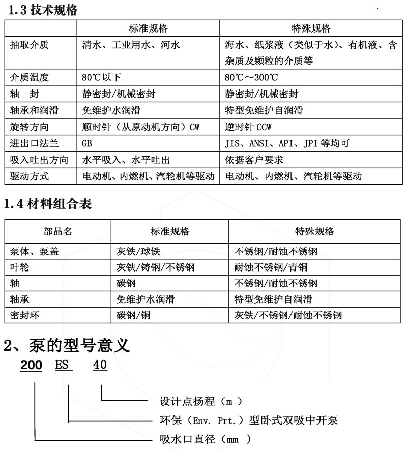 ES 係列(liè)環保免維護單級雙(shuāng)吸中開臥式和立式離心泵,是(shì)我(wǒ)公司在(zài)總結多年雙吸泵製造及應用經驗的基礎上,結合用戶在用泵過程中的痛點,由公司專家與國內外專家共同創造發明的一種新型水泵(臥式泵專利號:ZL 201822092944.2;立式(shì)泵(bèng)專利號(hào):ZL 2019 2 0293130.7)。其主(zhǔ)要特點是環保、免維護。